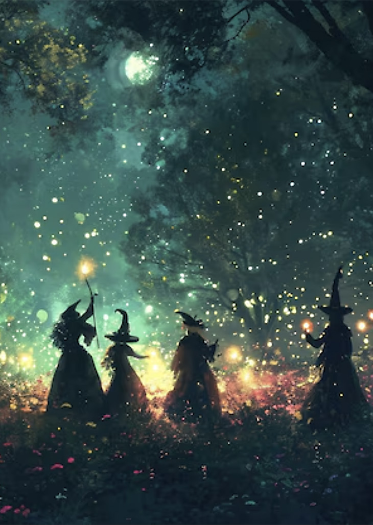 Think celtic or pagan witch inspired ... floaty material, moons, crystals, whatever you fancy really 🖤